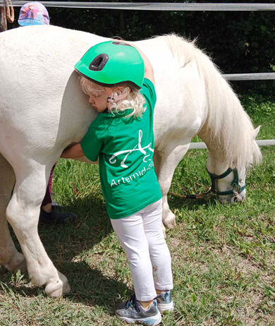 Attraverso una serie di percorsi e giochi, si crea una relazione tra bambino e pony.